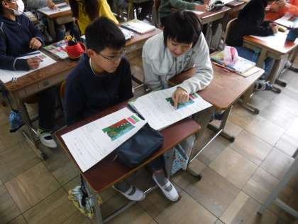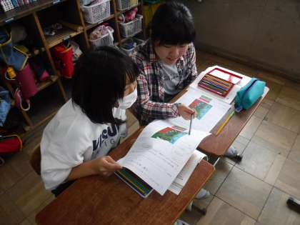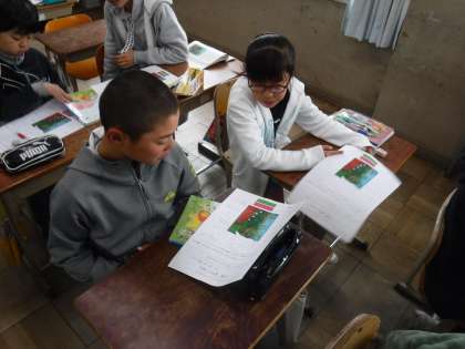 国語の学習では,1枚の絵を見て「事実」と「意見・感想」に分ける学習をしました。