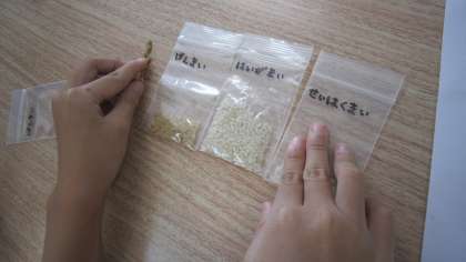 お米の写真を当てたり,お米にもいろいろな種類があることを知って,