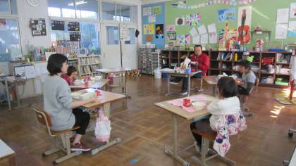 給食の時間にも,先生に入ってもらって,一緒に給食を食べました。