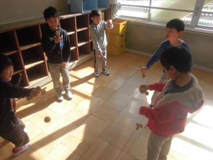 今日は,生活科の学習で「お正月に楽しむあそび」をしました。