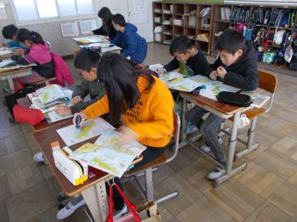 謎を紐解くため,今回は,土地の様子を地図帳を見ながら調べました。