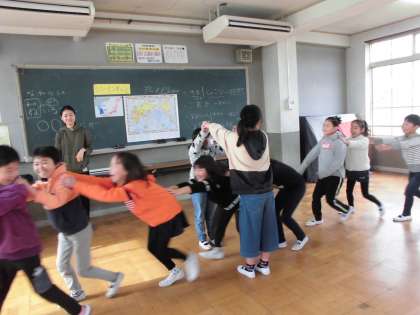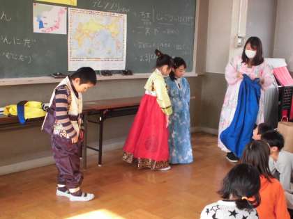 韓国の方に来ていただいて,韓国の言葉や遊びについて勉強しました。
