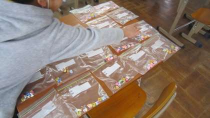 今回数えたのは,大量の消しゴム。子どもたちそれぞれの机に,一気にばらまかれた消しゴムたち。