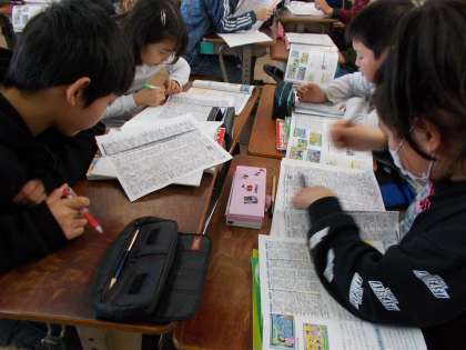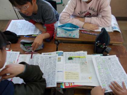 社会科で「放送局の番組作り」を学習しました。テレビ番組欄を見ながら,気づいたことや番組と時間帯などの関わりについて話し合いました。また,民放やNHKとのちがいなどについての意見なども出て,楽しく活動に取り組みました。