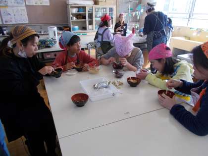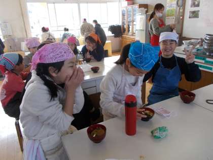 この後の給食はとてもおいしかったのですが,とてもお腹いっぱいで幸せすぎて辛い・・まあ「辛」に一本足せば「幸」。紙一重ということですね。