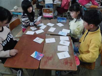 以前国語の時間に作った音訓カルタを実際に使って遊びました。