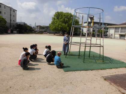 2年生になると遊具も2階まで登れるようになるので,遊具の持ち方・上り方・約束をしっかり勉強しました。
