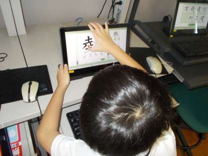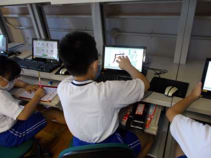 パソコン室で1人1台,タブレットを使って漢字の学習をしました。