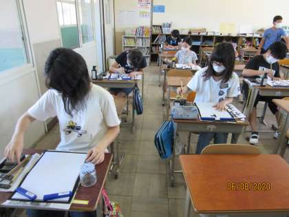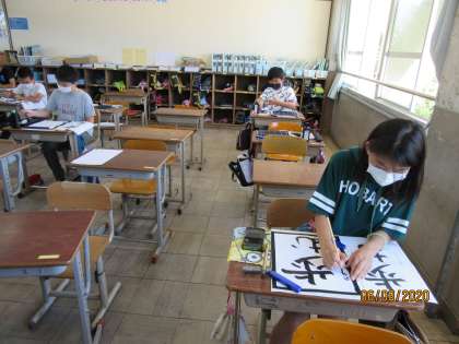 6年生になって,初めての毛筆の学習をしました。集中して書くことができました。