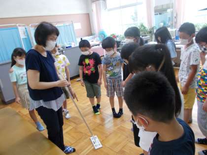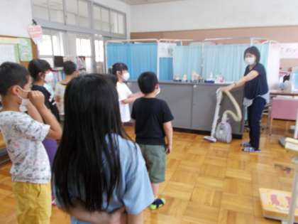 それぞれの場所へ行き,どこに掃除道具があるか,何をどう使うのかなどを知りました。