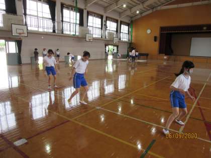 休業明けで最初の体育でしたが,「反復横跳び」を行い,記録を高めようとがんばりました。
