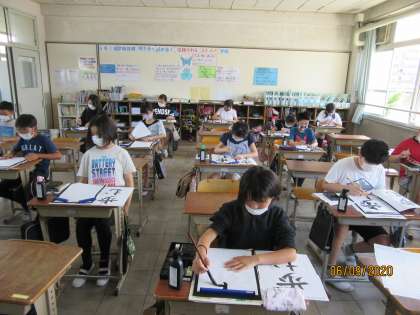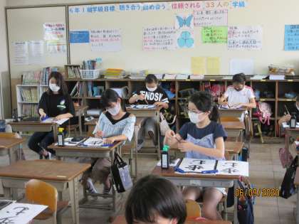 「歩む」を筆で書くために,気を付けることを整理しながら取り組みました。