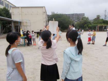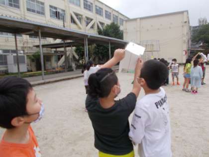 温度計は直射日光を当ててはだめなので,紙で覆います。
