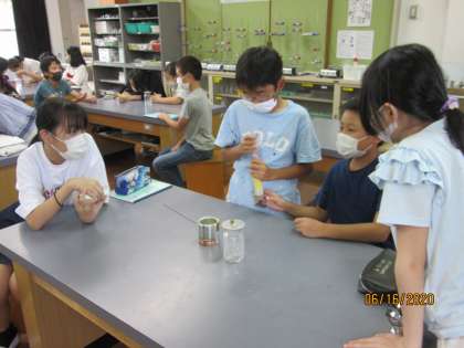 理科「ものの燃え方」 公開日 2020/06/16 更新日 2020/06/16 6年生の部屋 気体検知管を使って二酸化炭素の量を測定しました。 ろうそくが燃える前と燃えた後の二酸化炭素鵜の割合を比べました。 グループで協力して手際よく進めることができています。