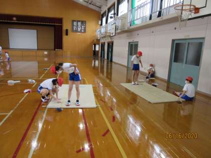体力テスト 公開日 2020/06/17 更新日 2020/06/17 6年生の部屋 前回,まだ体力テストが終わっていなかったので,本日4校時に班ごとで体力を測定しました。6年生らしく,落ち着いて取り組み,1時間の授業中に測定することができました。