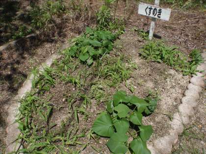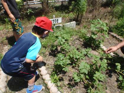 畑に行くと,どんどん大きくなっているさつまいもとじゃがいも。