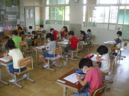国語のひらがなの学習では,集中して書いています。