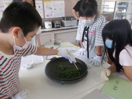 最初は鮮やかな緑色でしたが,だんだんだんだんお茶の葉っぽい色,肌触りになってきました。