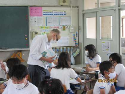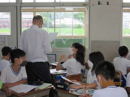 今日は,ポール先生に授業に入っていただきました。外国語では,自己紹介の仕方を学んでいます。「This is me」の単元で,自分の得意なことや好きなことを英語に変え伝え合いをしました。