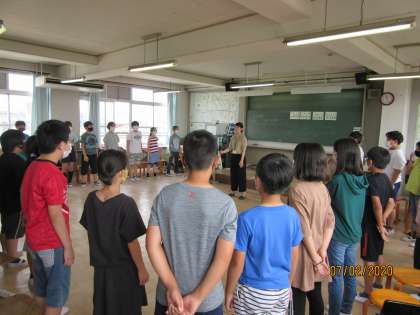 音楽の授業では,音楽を聴いて指揮の練習をしたり発声練習をしたりするなど,先生の話をよく聞いて取り組みました。