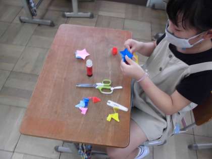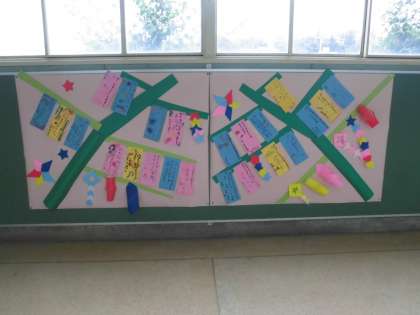 明日は七夕なので,願い事を書いて,七夕飾りを作りました。