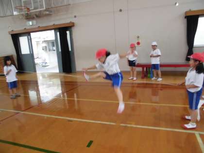 ゴムとびははじめてしたのですが,なかなか高いところまでとぶことができていました。