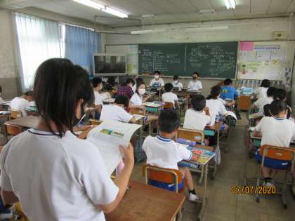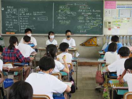 社会科の歴史学習「縄文のむらから古墳のくにへ」で縄文時代の人か弥生時代の人か,どちらが幸せだったのだろうかというテーマで話し合いをしました。教科書や資料集に書かれていることをもとに,意見を出し合い,興味をもって取り組みました。社会係の人が司会担当として話し合いをすすめました。