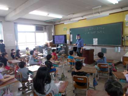 今日の3時間目は伏見警察署のスクールサポーターの方が非行防止教室として,お話をしてくださいました。