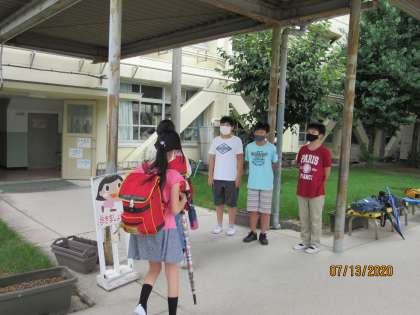 最高学年として「あいさつ」のお手本を示そうと,下の学年の子どもたちに対して,「おはようございます」の声を出してくれました。