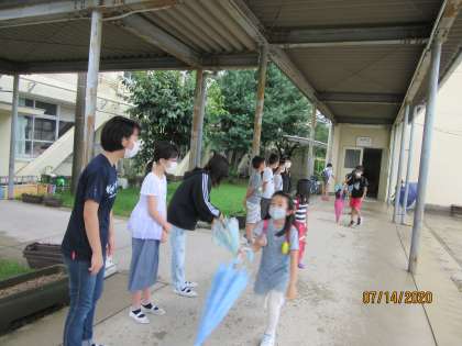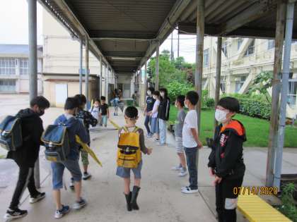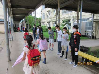 あいさつ週間2日目です。6年1組の火曜のあいさつ当番の子どもたちは,自分からすすんで,教室から渡り廊下に移動して,あいさつに取り組んでくれました。