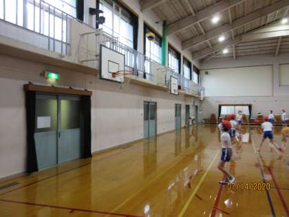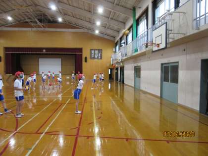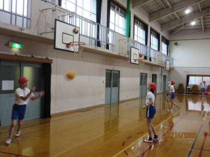 ダンス,ストレッチの練習の後,フリースローの練習をしました。運動委員会でフリースロー大会の計画案を立てたので,早速,練習に取り組みました。