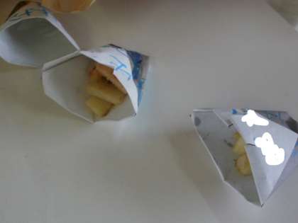 3つの紙袋に入れて,さらにそれぞれの味付け(塩,コンソメ,たらこ←ふりかけです)を入れて・・・