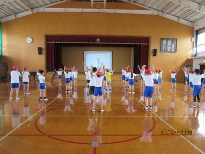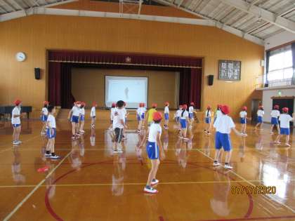 体育の時間「Choo Choo TRAIN」のダンス動画を見ながら,ダンスに取り組みました。今日が初めてなのに,リズミカルに体を動かしていました。