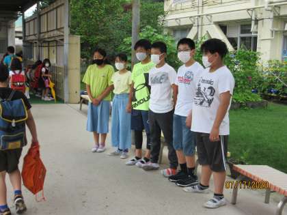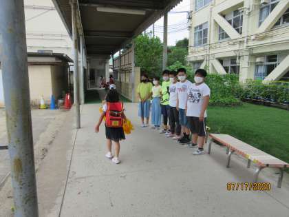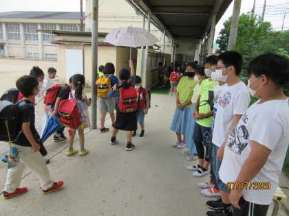 今日は,あいさつ週間最終日でした。雨が降っていたので,渡り廊下であいさつをして下学年の子どもたちを迎えました。良い声を出して,あいさつをしていました。