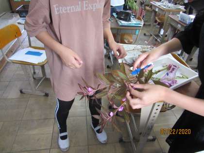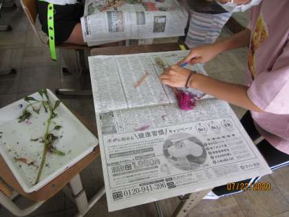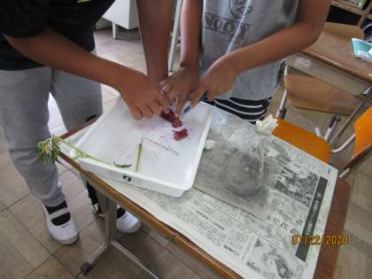 ホウセンカの葉や茎を縦や横に切って切り口の様子を観察しました。根・茎・葉の断面をよく観察しました。