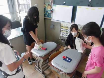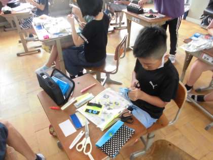 子どもたちは,針と糸を使って,自分だけのオリジナルの作品作りをしています。フェルトを使ったペンケースやマスク入れなど,いろいろな作品があります。今日は,アイロンを使って,アイロンの熱でフェルトを付ける飾り付けにもチャレンジしました。自分のイニシャルを付けたり,星やマークなどをデザインしたり,完成に向けてみんな頑張っています。