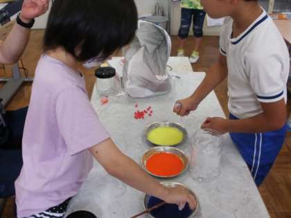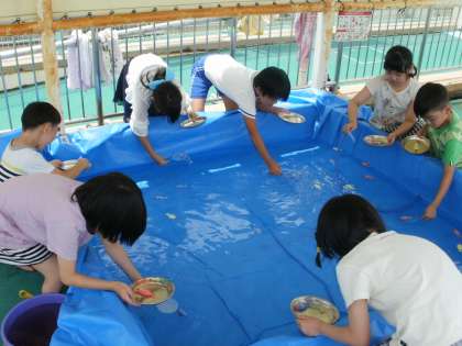 金魚すくいは,しょうゆ入れの金魚に色水を入れて・・・