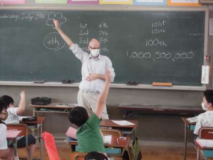 今日の外国語の授業では,ALTのポール先生と一緒に,日付けの表し方や誕生日を伝えたり,聞いたりする文章を学習しました。1月から12月までを英語で話したり,1日・2日・3日・・・・・31日までを数えたりしました。会話を楽しみ自分から言葉に出していくうちに覚えることができそうです。また,いろいろなキャラクターの誕生日などを答えたりもしました。みんな楽しく学習することができました。