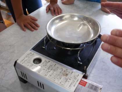 すると…湯気がでてきて,ぷつぷつと音を立てながら,だんだん少なくなり,