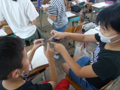 見つけたものを隣の人や班で交流しているとき,