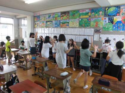 今年の運動会は,例年とは少し内容が異なり,体育発表会という形で実施します。子どもたちの参加する種目は,3つあり,全校ダンス・ハードル走・学年リレーをします。子どもたちは,休み時間などを利用して,全校ダンスの練習を一生懸命に頑張っています。今年のダンスは,「ハロー ハロー」という曲でNHKの天才てれびくんのエンディングのダンスです。映像を見ながら楽しく踊りを練習しています。