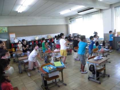 教室でダンスの練習をしました。