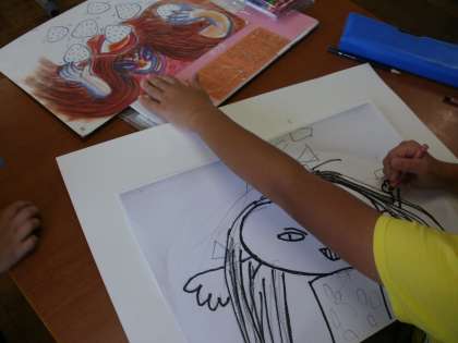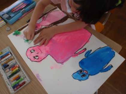 さらに,それらのいろいろなお化けを見てきた中で,「お気に入りのお化け」または「オリジナルおばけ」を描いてみよう!ということで,お化けの絵を描いています。