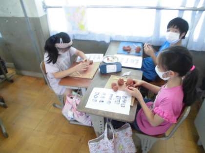 土粘土でシーサー作りに挑戦しました。作る手順を学習した後は,力強く粘土をこねていきました。次に,体の土台から思い思いのシーサーを作っていきます。自分が思い描くシーサーがなかなかできずに悪戦苦闘しながらも,最後まで集中してシーサー作りができました。