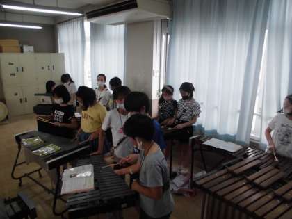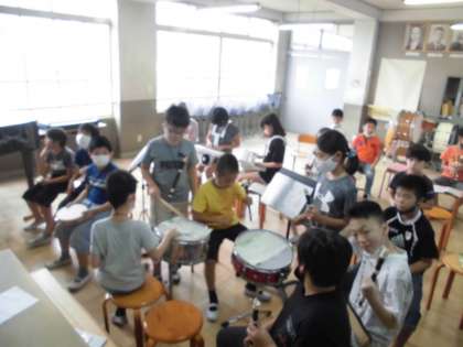 音楽の学習では,いろいろな音色を楽しもうということで,鉄琴・木琴・バスマスター・けんばんハーモニカ・リコーダー・小たいこ・タンブリンなどに分かれて合奏をしました。リズムや音階などにも気を付けて合奏を楽しむことができました。