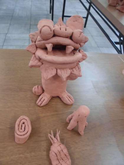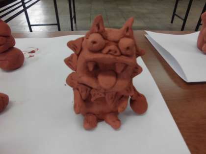 シーサーとは,沖縄の方言で『獅子』を意味するそうです。エジプトのスフィンクスが原型になっているのではないかと言われているらしいです。シーサーは建物の門や屋根などに設置され,家や人に降りかかる災いを追い払う魔除けの役割を持っているそうです。今回は,こころを込めてオリジナル シーサーをつくりました。みんなにとっても「守り神」ですね。
