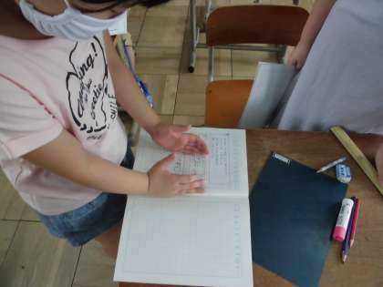 図がどういう意味なのか,どうしたら答えがわかるのか,図を指さしながら説明しました。