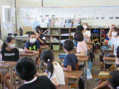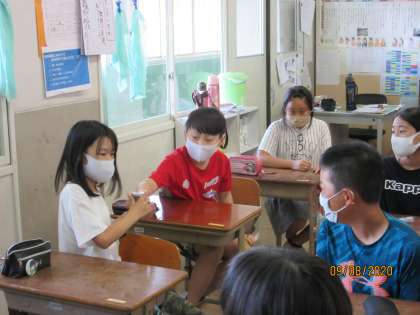 先日の学活でばくだんゲームを楽しみました。水が入った入れ物を3回振って,後ろの席の人に渡していきます。音楽が鳴り終わって,その入れ物を持っていたらその人がアウトになります。みんなで楽しむことができました。