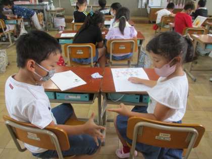 好きなものなあにカードを紹介しました。 友達の好きなのを知るとみんなにこにこして聞いていました。