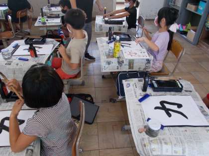 昨日の書写での習字の様子です。「折れ」と「はらい」に気をつけて『力』を書きました。子ども達は,みな満足気です。